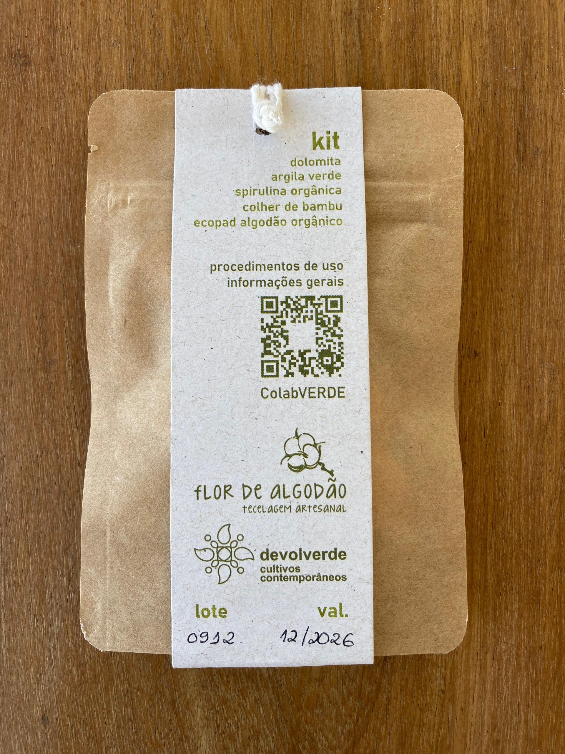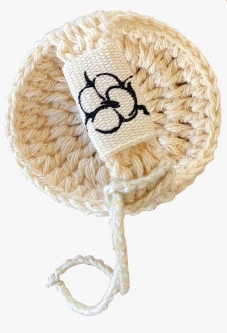 A máscara facial vem acompanhada de um disco de crochê reutilizável, que chamamos de ECOPAD, e de uma colher de bambu.